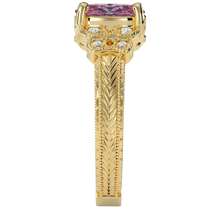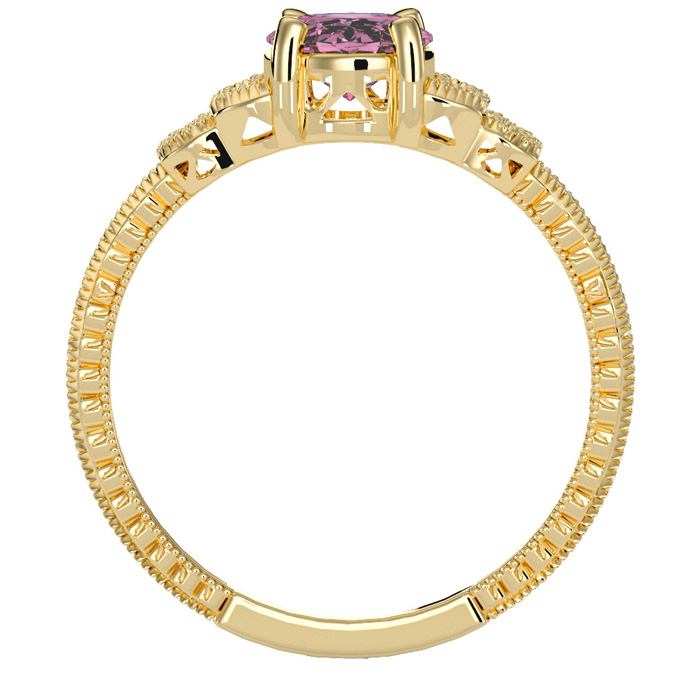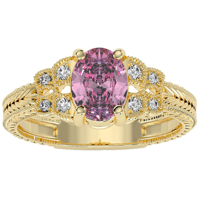 1 Carat Oval Shape Pink Topaz and Diamond Ring In 10 Karat Yellow Gold