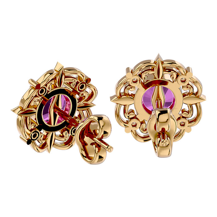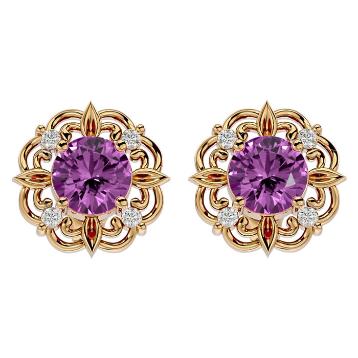 2 1/10 Carat Pink Topaz and Diamond Antique Stud Earrings In 14 Karat Yellow Gold