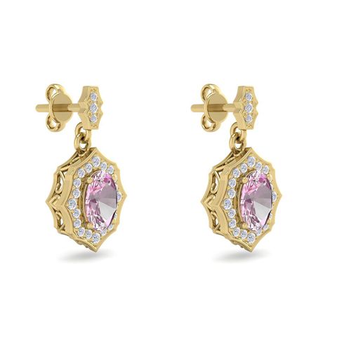 2 1/4 Carat Oval Shape Pink Topaz and Diamond Dangle Earrings In 14 Karat Yellow Gold