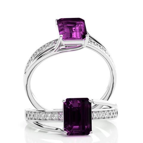 2 Carat Emerald Shape Pink Topaz and Diamond Ring In 14 Karat White Gold