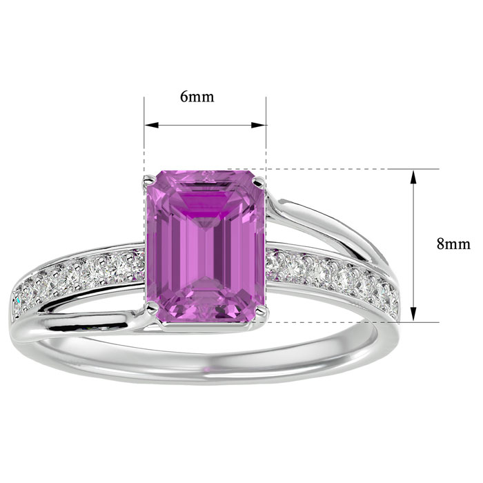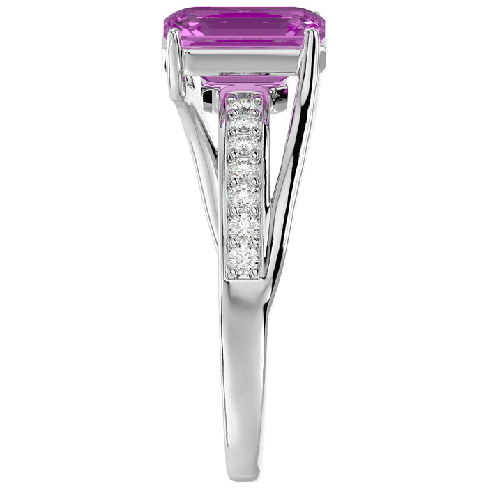 2 Carat Emerald Shape Pink Topaz and Diamond Ring In 14 Karat White Gold