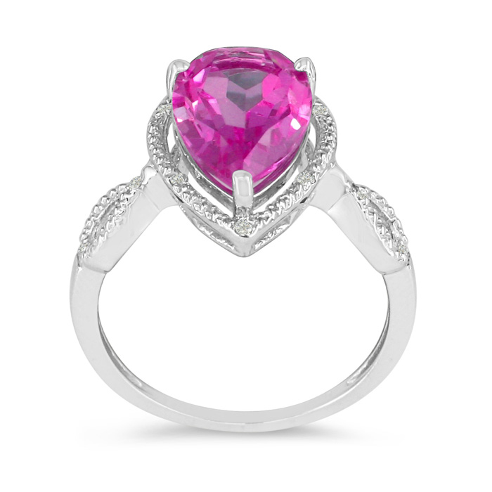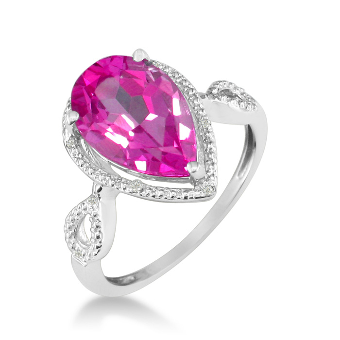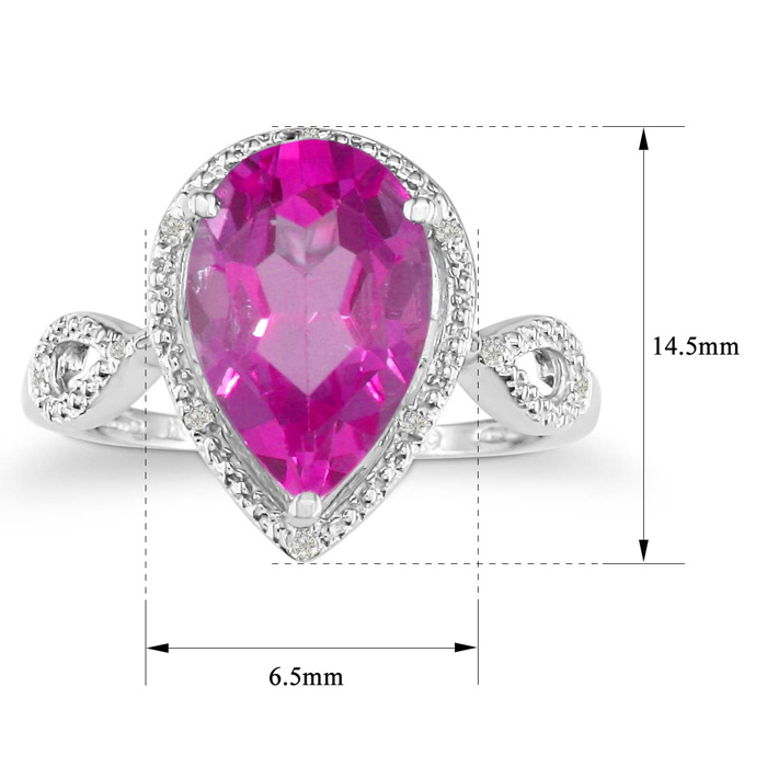 3 1/2 Carat Pear Shaped Pink Topaz and Diamond Ring in 10k White Gold