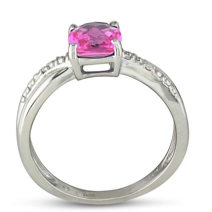 3/4ct Cushion Cut Pink Topaz and Diamond Ring in 10k White Gold