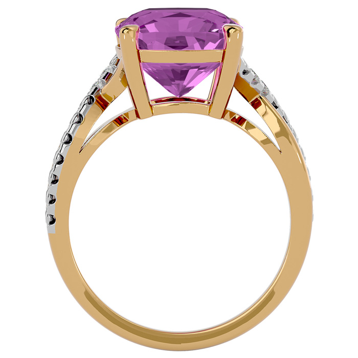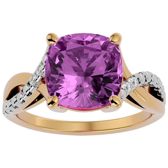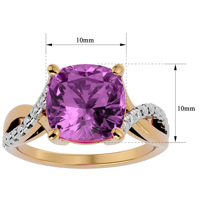 4 Carat Cushion Cut Pink Topaz and Diamond Ring in 10k Yellow Gold