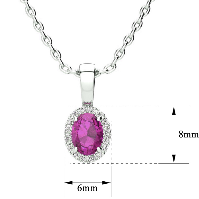 1/2 Carat Oval Shape Pink Sapphire and Halo Diamond Necklace In Sterling Silver With 18 Inch Chain