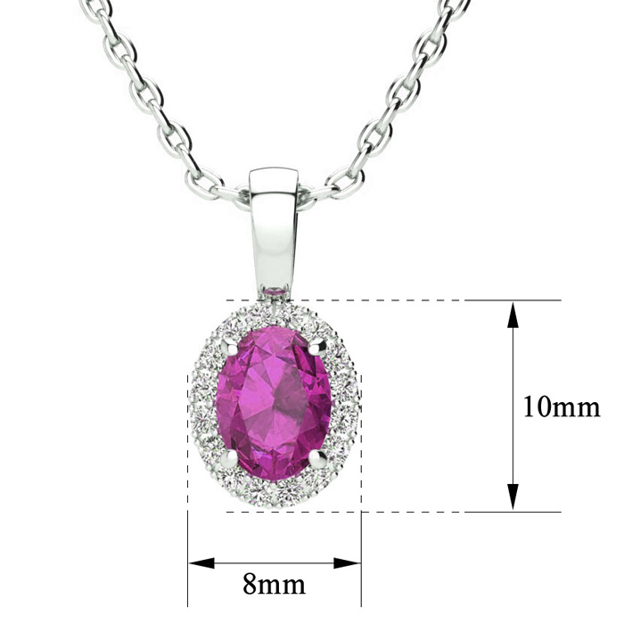 1 Carat Oval Shape Pink Sapphire and Halo Diamond Necklace In Sterling Silver With 18 Inch Chain