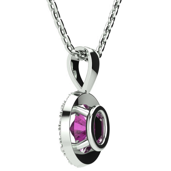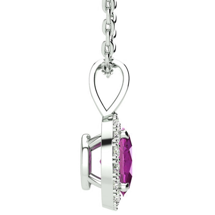 1 Carat Oval Shape Pink Sapphire and Halo Diamond Necklace In Sterling Silver With 18 Inch Chain