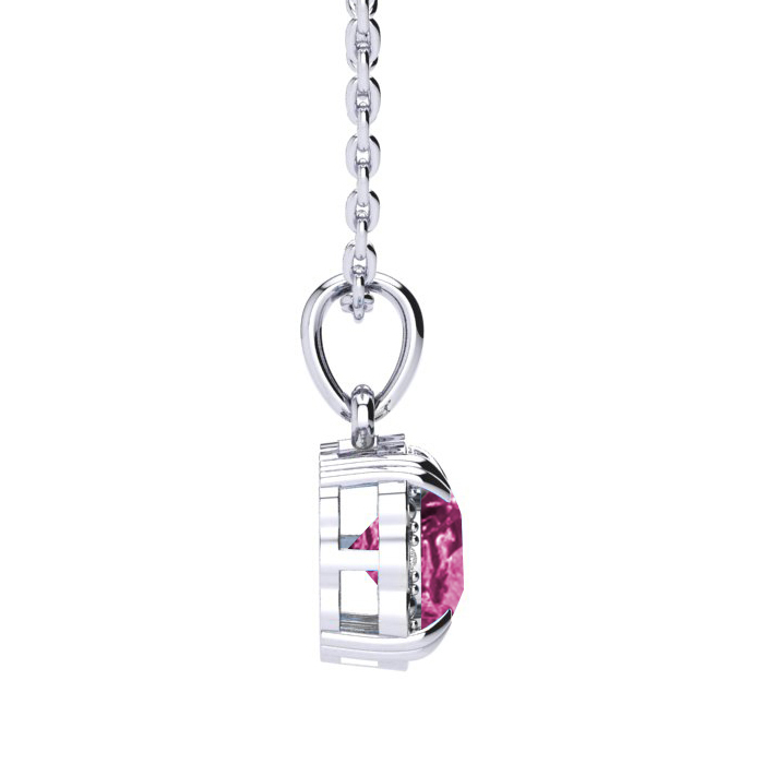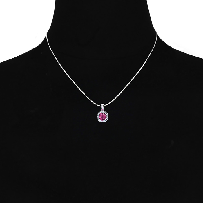 2 Carat Cushion Cut Pink Sapphire and Diamond Necklace In Sterling Silver With 18 Inch Chain