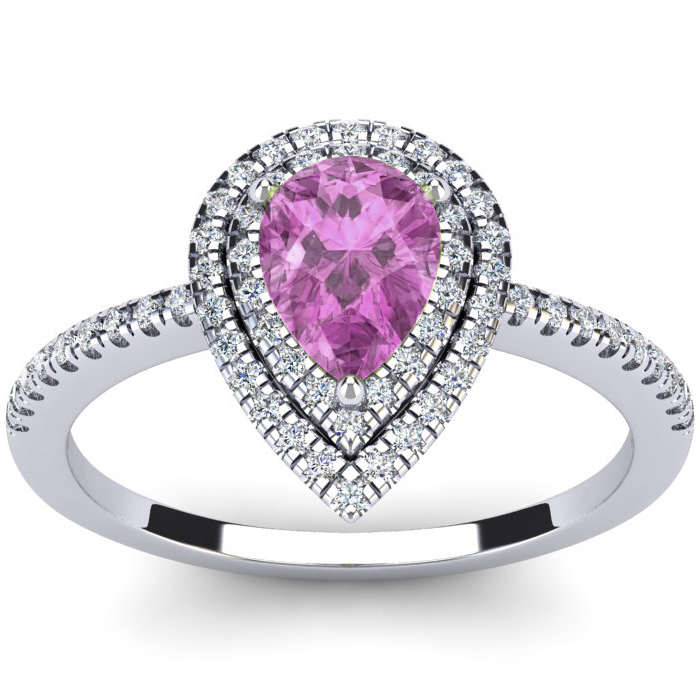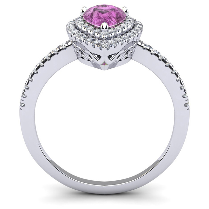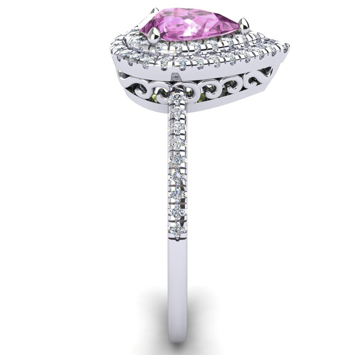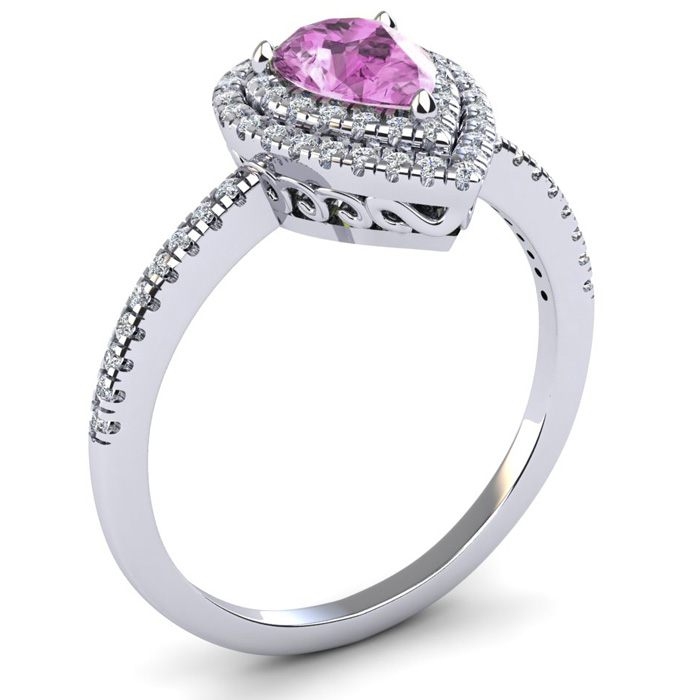 1 Carat Pear Shape Created Pink Sapphire and Double Halo Diamond Ring In Sterling Silver