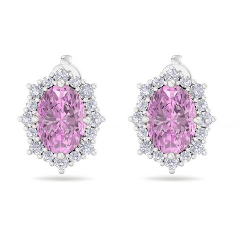 2 1/2 Carat Oval Shape Pink Topaz and Diamond Earrings In 14K White Gold