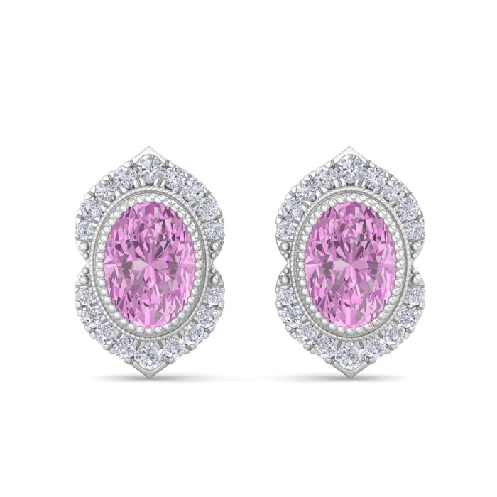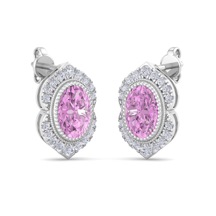 2 1/2 Carat Oval Shape Pink Topaz and Diamond Earrings In 14K White Gold