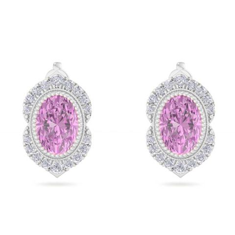 2 1/2 Carat Oval Shape Pink Topaz and Diamond Earrings In 14K White Gold