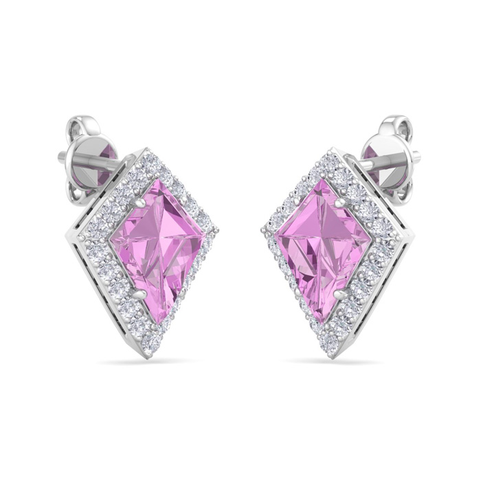 Retrograde Birthstones™ 2 1/5 Carat Kite Shape Pink Topaz and Diamond Earrings In 14K White Gold