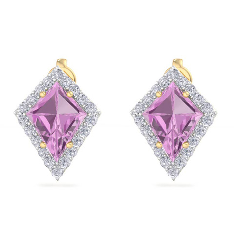 2 1/5 Carat Kite Shape Pink Topaz and Diamond Earrings In 14K Yellow Gold