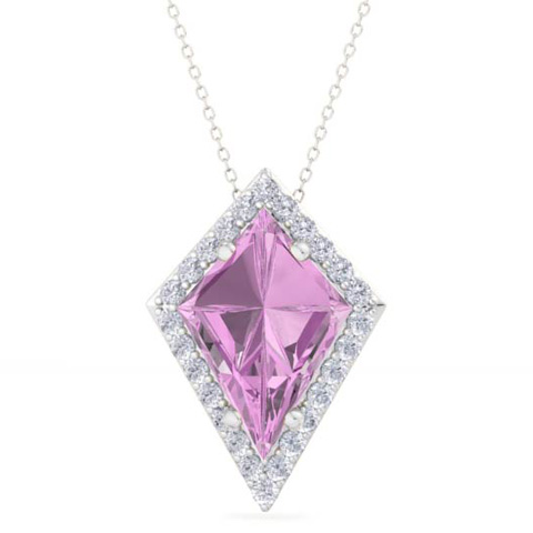 1 3/4 Carat Kite Shape Pink Topaz and Diamond Necklace In 14K White Gold