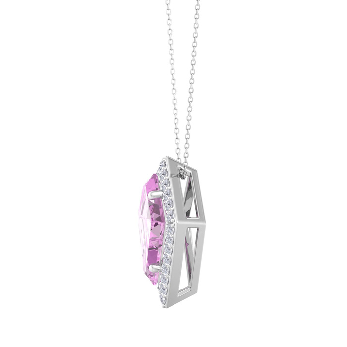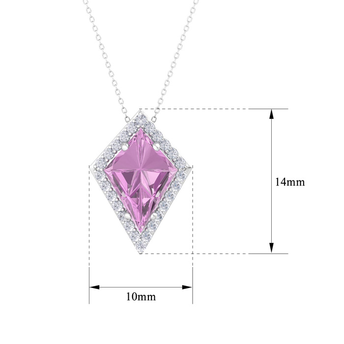 1 3/4 Carat Kite Shape Pink Topaz and Diamond Necklace In 14K White Gold