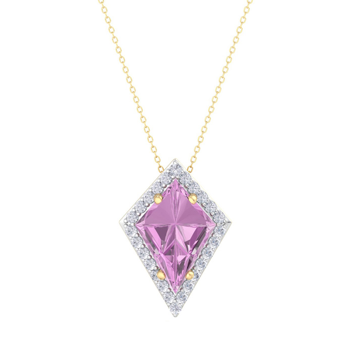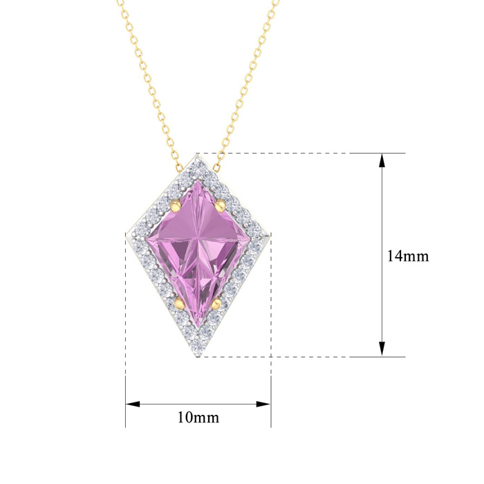 Retrograde Birthstones™ 1 3/4 Carat Kite Shape Pink Topaz and Diamond Necklace In 14K Yellow Gold