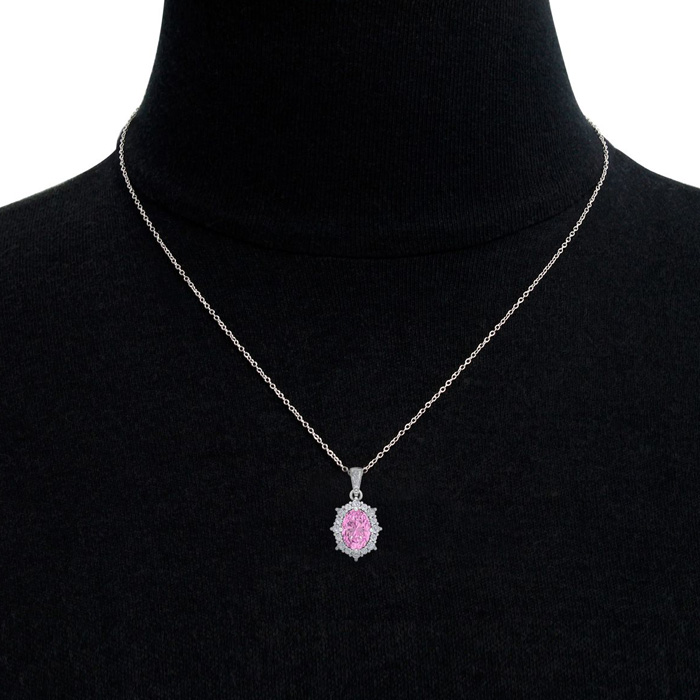 Retrograde Birthstones™ 1 3/4 Carat Oval Shape Pink Topaz and Diamond Necklace In 14K White Gold