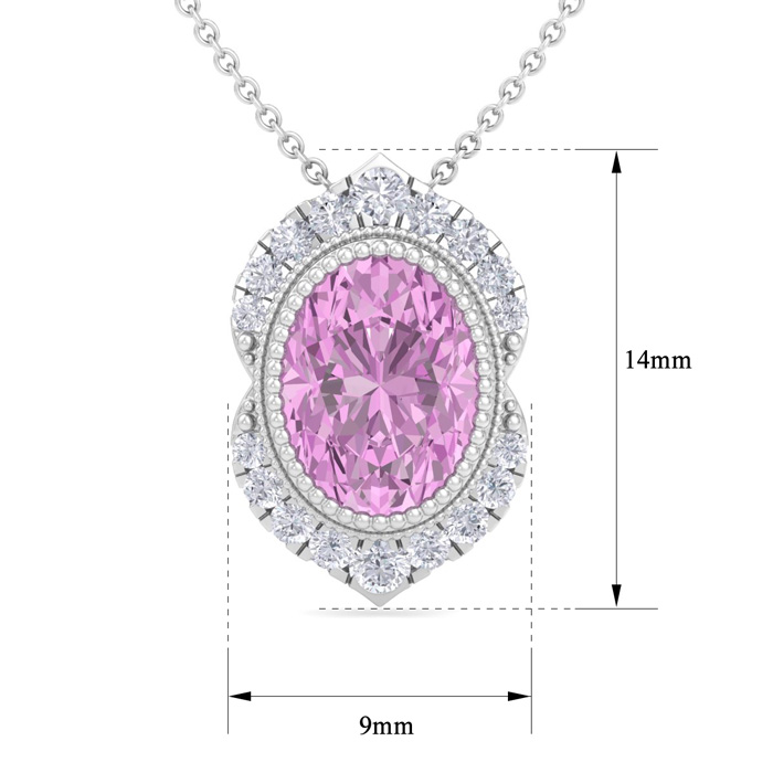 Retrograde Birthstones™ 1 3/4 Carat Oval Shape Pink Topaz and Diamond Necklace In 14K White Gold