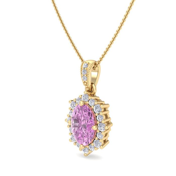 Retrograde Birthstones™ 1 3/4 Carat Oval Shape Pink Topaz and Diamond Necklace In 14K Yellow Gold