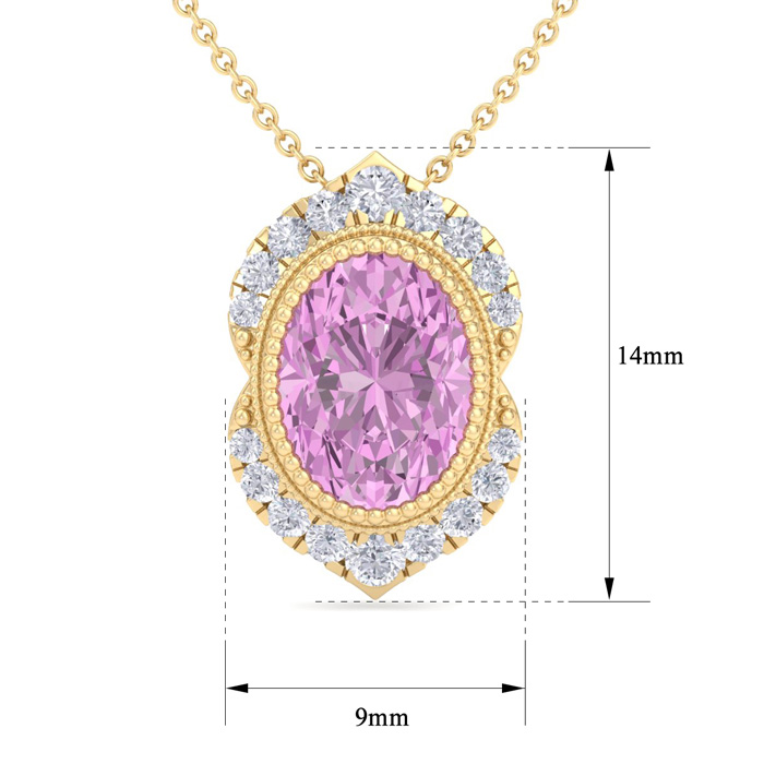 Retrograde Birthstones™ 1 3/4 Carat Oval Shape Pink Topaz and Diamond Necklace In 14K Yellow Gold