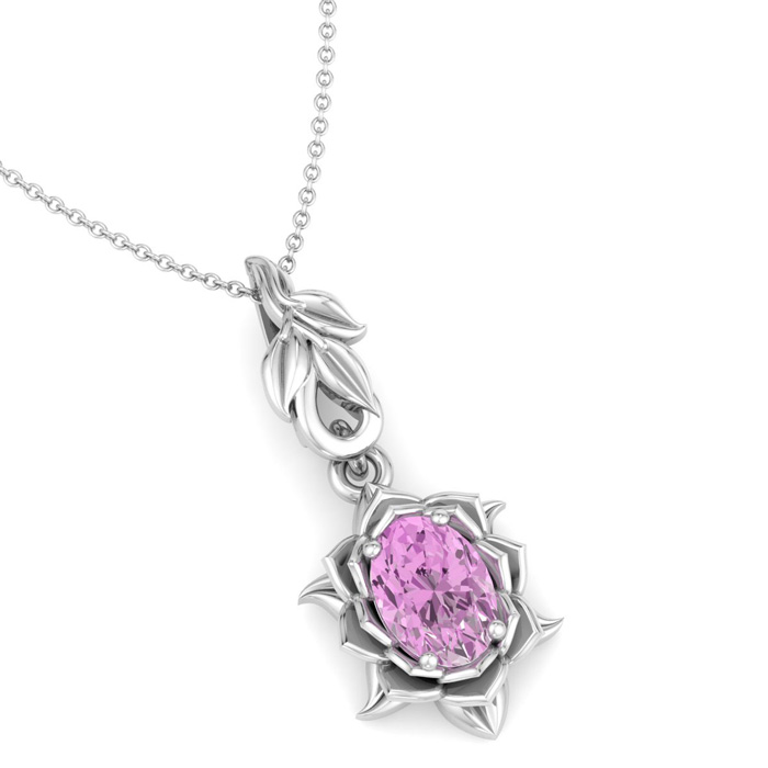 1 Carat Oval Shape Pink Topaz Ornate Necklace In 14K White Gold