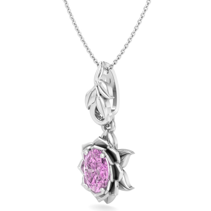 Retrograde Birthstones™ 1 Carat Oval Shape Pink Topaz Ornate Necklace In 14K White Gold
