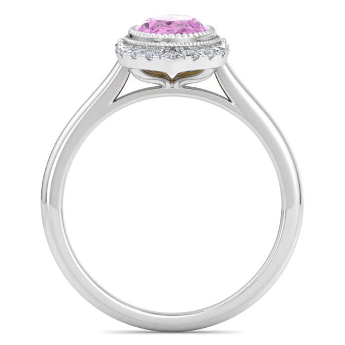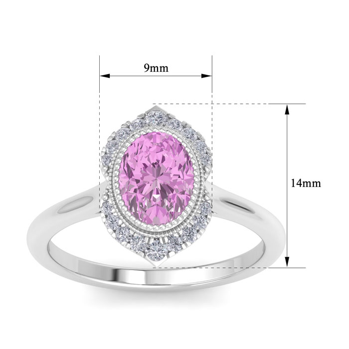 Retrograde Birthstones™ 1 3/4 Carat Oval Shape Pink Topaz and Diamond Ring In 14K White Gold