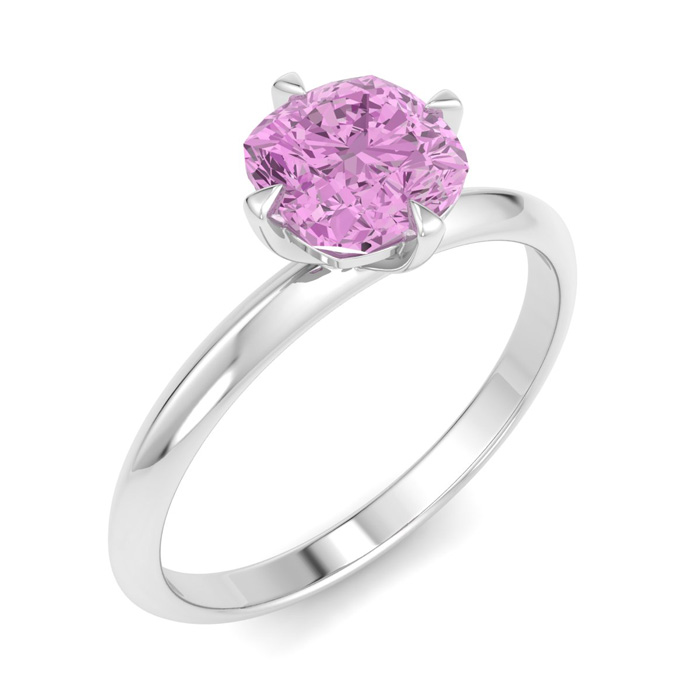 Retrograde Birthstones™ 1 Carat Cushion Shape Pink Topaz Ring In 14K White Gold