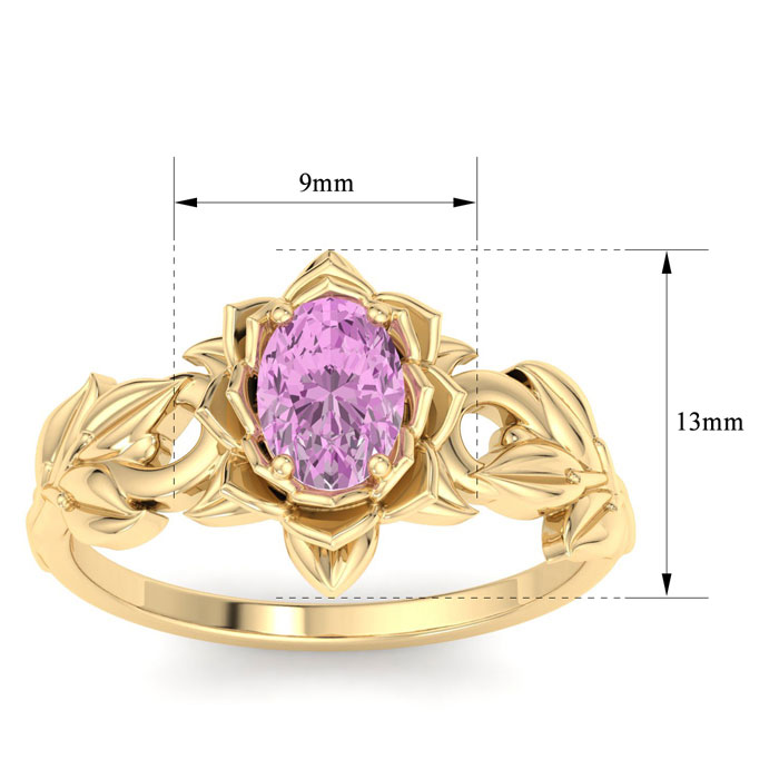 Retrograde Birthstones™ 1 Carat Oval Shape Pink Topaz Ornate Ring In 14K Yellow Gold