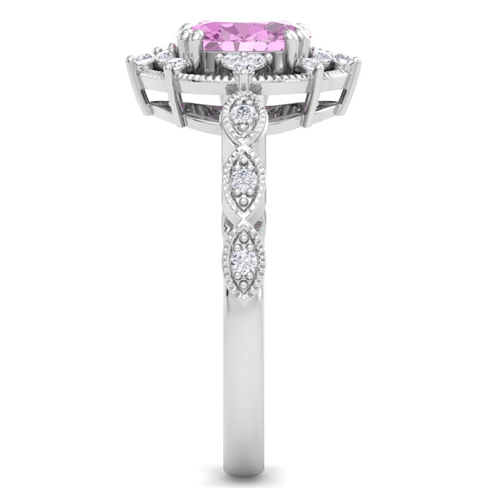 1 Carat Pink Topaz and Halo Diamond Ring In 14K White Gold
