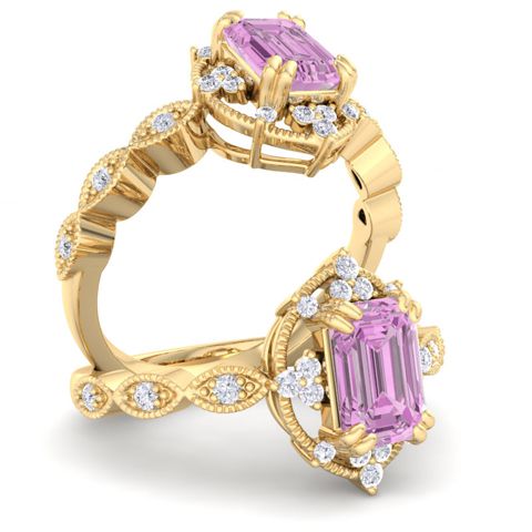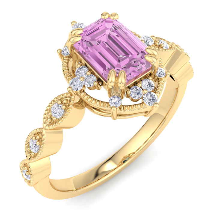 1 Carat Pink Topaz and Halo Diamond Ring In 14K Yellow Gold