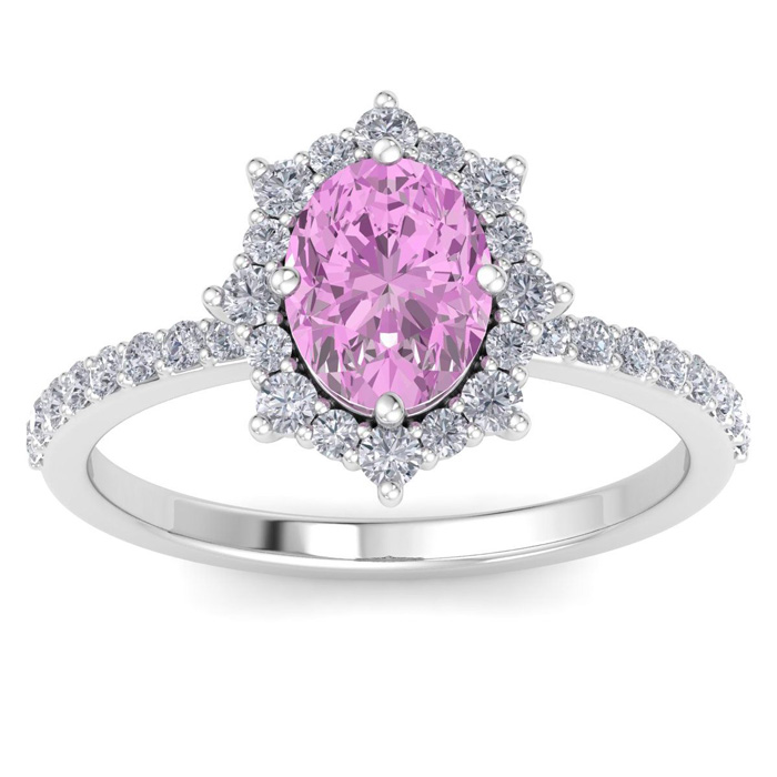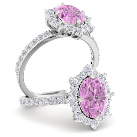 2 Carat Oval Shape Pink Topaz and Diamond Ring In 14K White Gold
