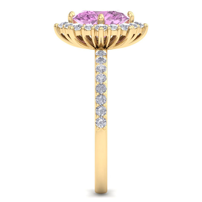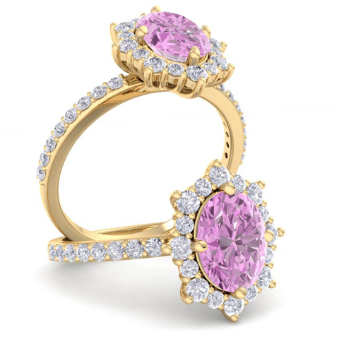 2 Carat Oval Shape Pink Topaz and Diamond Ring In 14K Yellow Gold