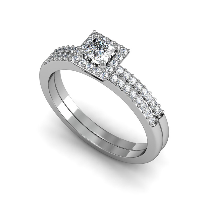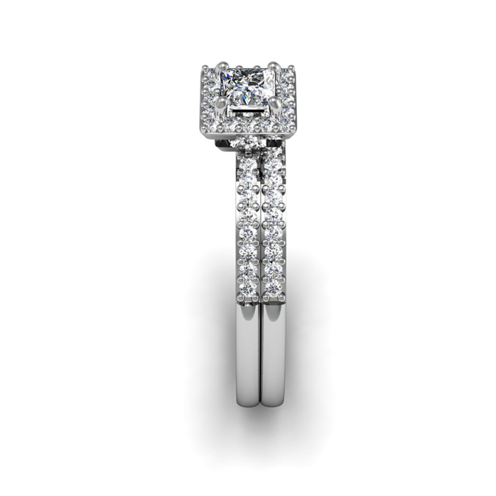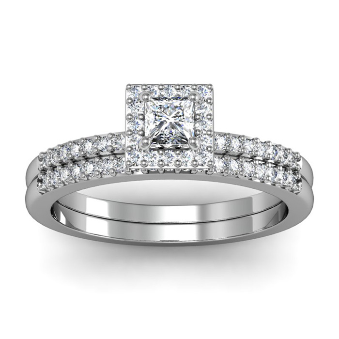 Get a fantastic deal on this Previously Owned 1/2 Carat Princess Cut Pave Halo Diamond Bridal Set in 14k White Gold, Size 3. By purchasing 2nd hand jewelry from SuperJeweler, you get the fine jewelry you want at a really incredible price.