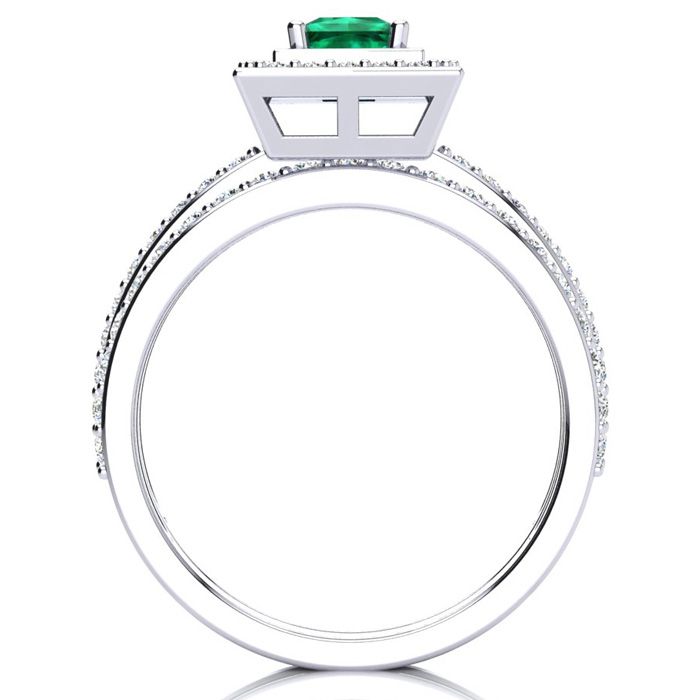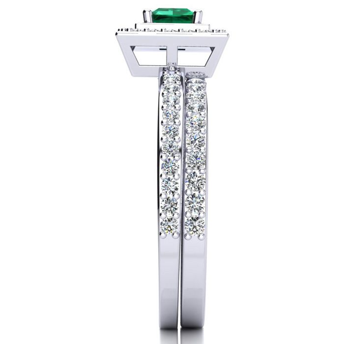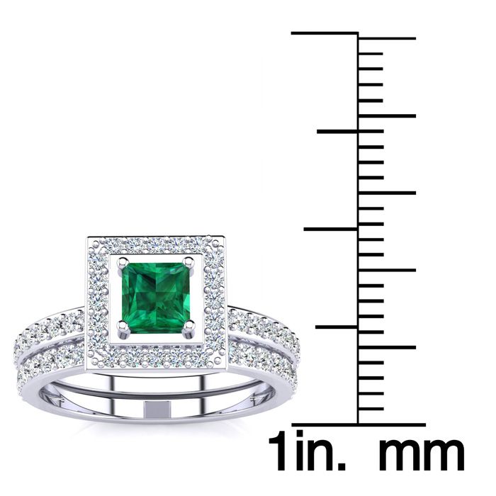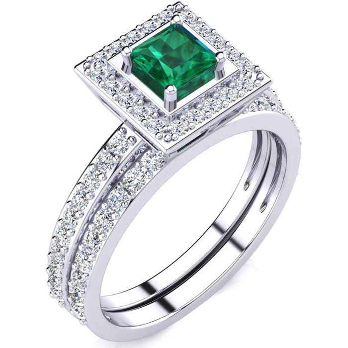 1ct Princess Cut Emerald and Natural Diamond Bridal Set in 14k White Gold