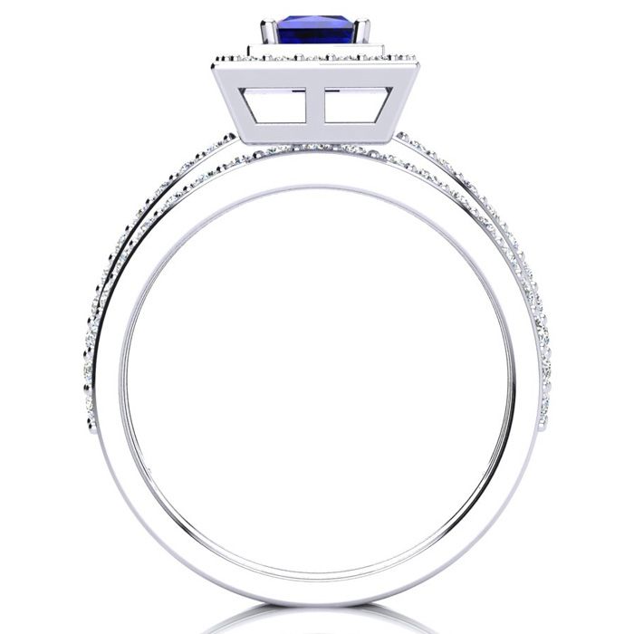 1ct Princess Cut Sapphire and Natural Diamond Bridal Set in 14k White Gold