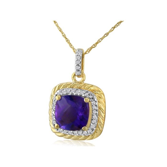 Rope Design Amethyst and Diamond Pendant in 14k Yellow Gold