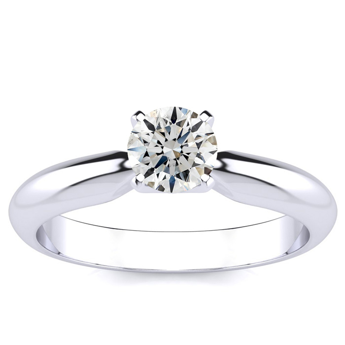 1/2 Carat Natural Diamond Round Engagement Rings In 14K White Gold