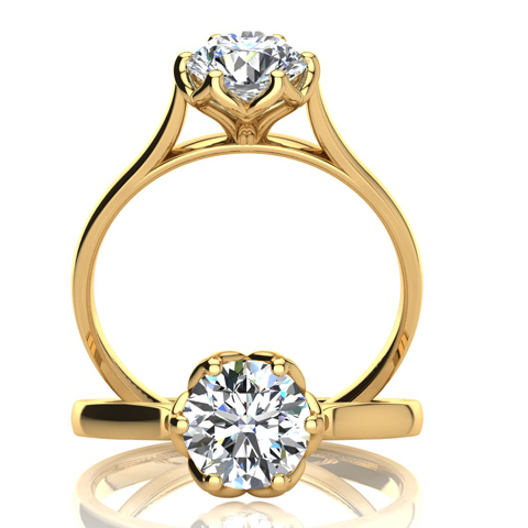 1 Carat Natural Diamond Round Engagement Rings In 14K Yellow Gold