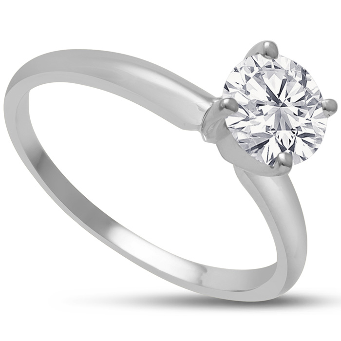1 Carat Natural Diamond Round Engagement Rings In 14K White Gold