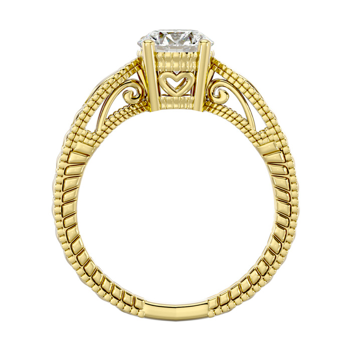 1 Carat Diamond Round Engagement Rings In 14K Yellow Gold With Tapered Etched Band