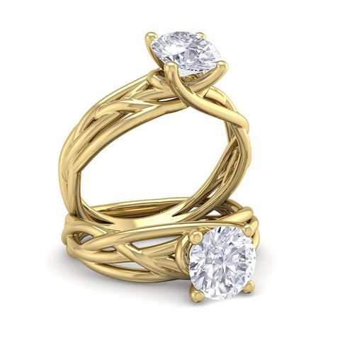 1 Carat Diamond Round Engagement Rings In 14K Yellow Gold, With Intricate Vine