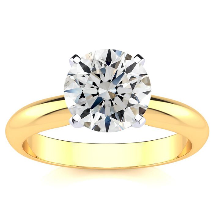2 Carat Natural Diamond Round Engagement Rings In 14K Yellow Gold