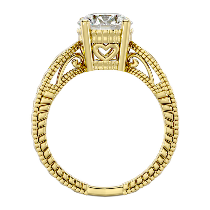 2 Carat Natural Diamond Round Engagement Rings with Tapered Etched Band In 14 Karat Yellow Gold