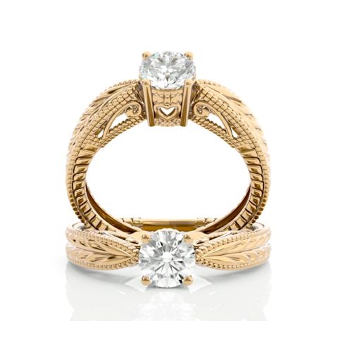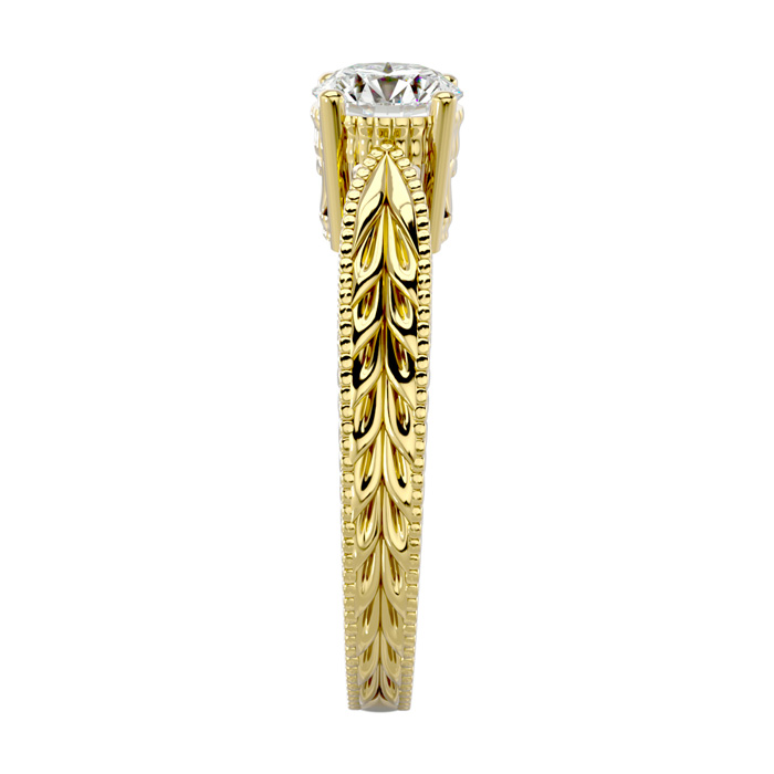 3/4 Carat Natural Diamond Round Engagement Rings with Tapered Etched Band In 14 Karat Yellow Gold