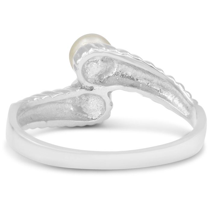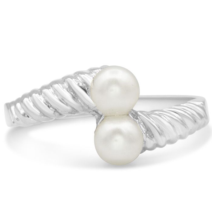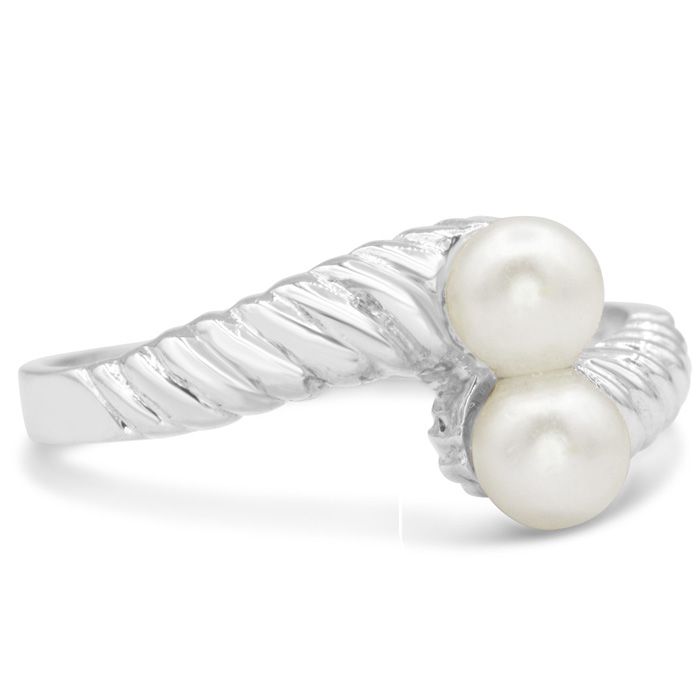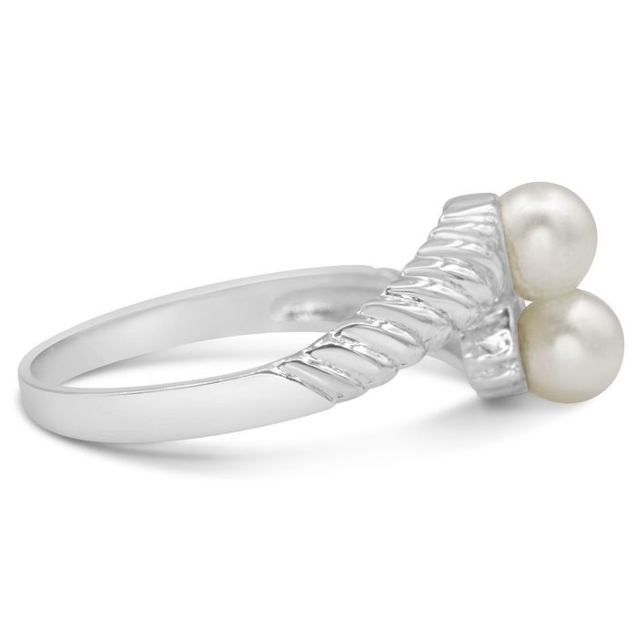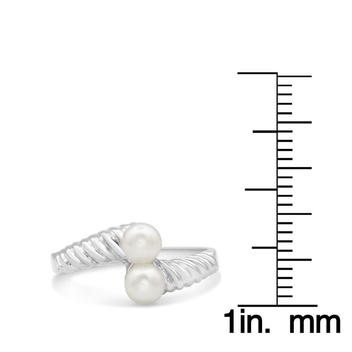 This ring features two 4.5mm freshwater cultured pearls. This ring is in 14 karat white gold.