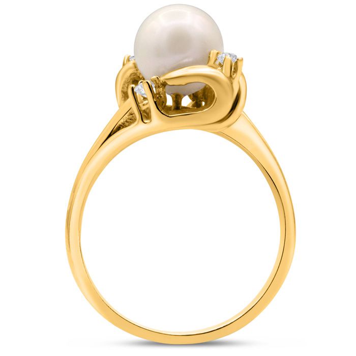 Round Freshwater Cultured Pearl and 1/10ct Diamond Ring In 14 Karat Yellow Gold