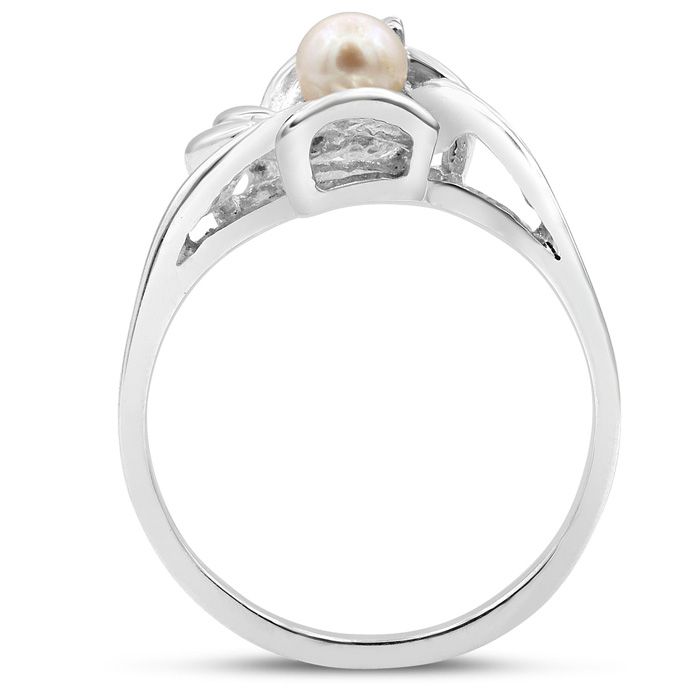 Round Freshwater Cultured Pearl and Diamond Accent Ring In 14 Karat White Gold