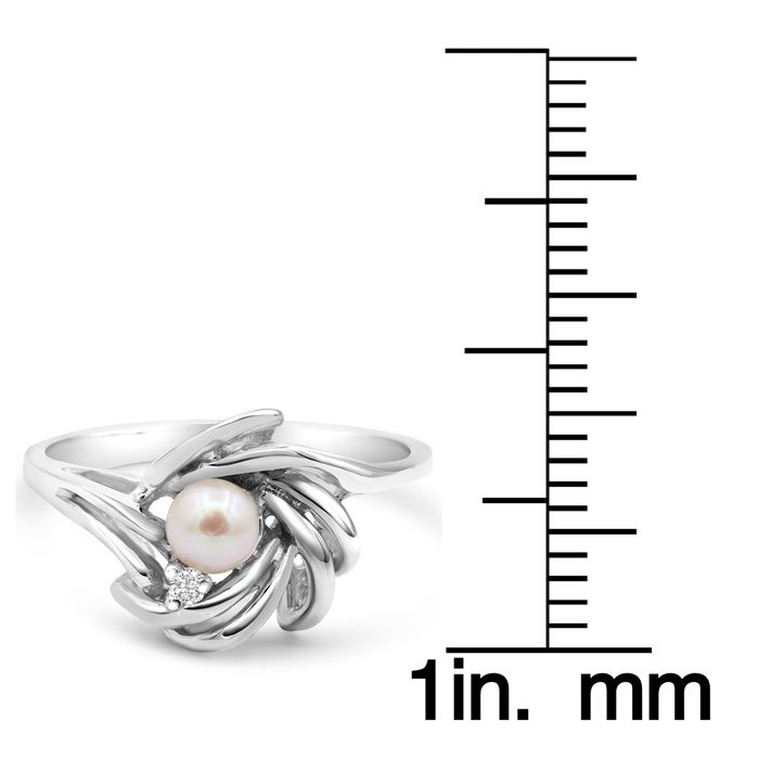 This ring features one 4mm freshwater cultured pearl. It has two diamond accents in I-J color, I2-I3 clarity at 0.02 carats total. This ring is in 14 karat white gold.
